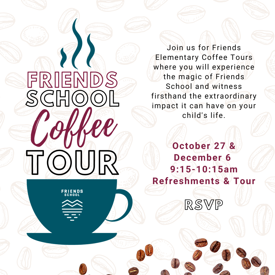 Join us for Friends Elementary Coffee Tours where you will experience the magic of Friends School and witness firsthand the extraordinary impact it can have on your child's life. Enjoy refreshments, chat with our head of elementary and head of school, and experience a very special morning in the life of a Friends School elementary school student. PLEASE RSVP at https://www.eventbrite.com/e/722144833637?aff=oddtdtcreator
